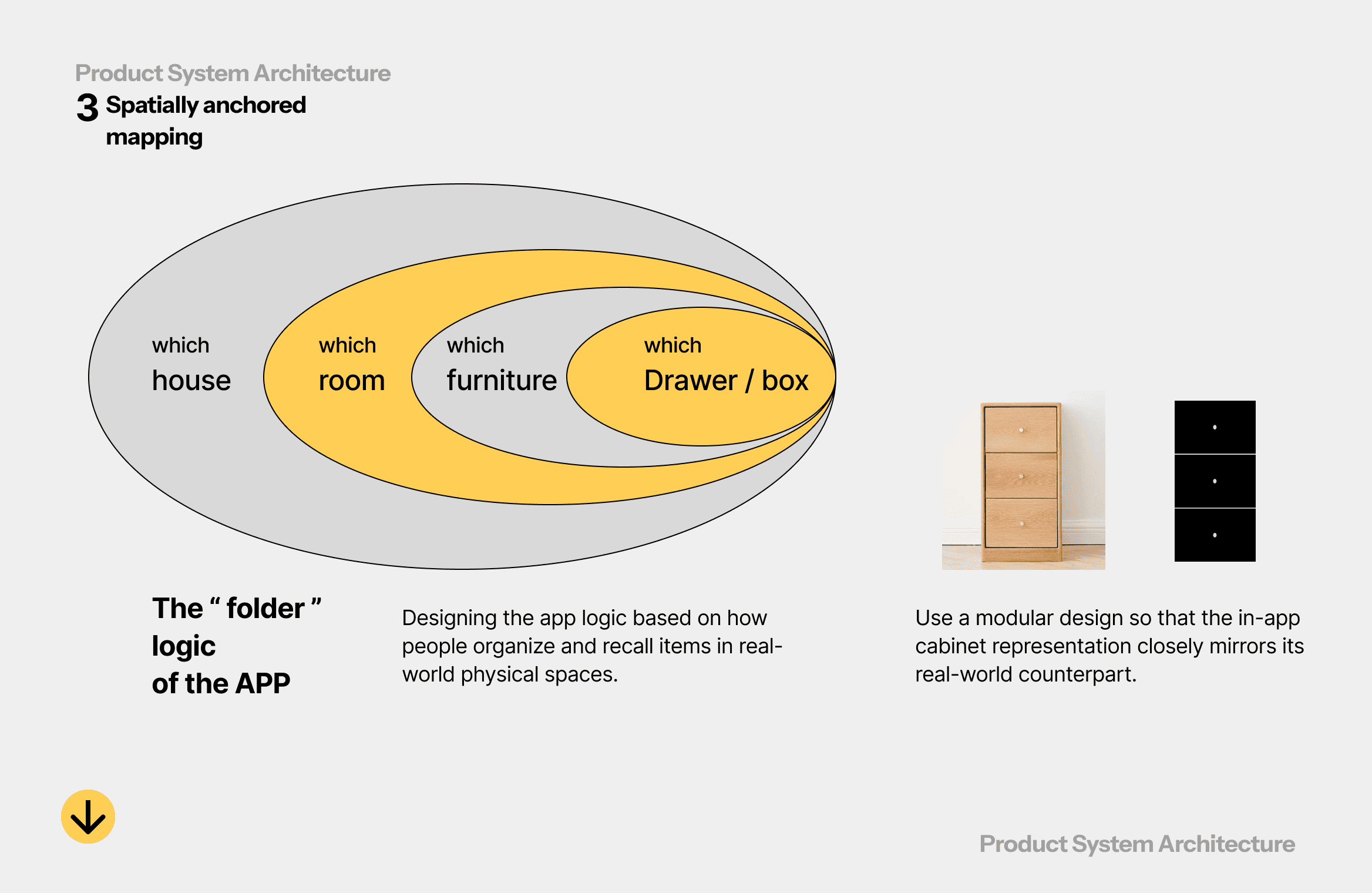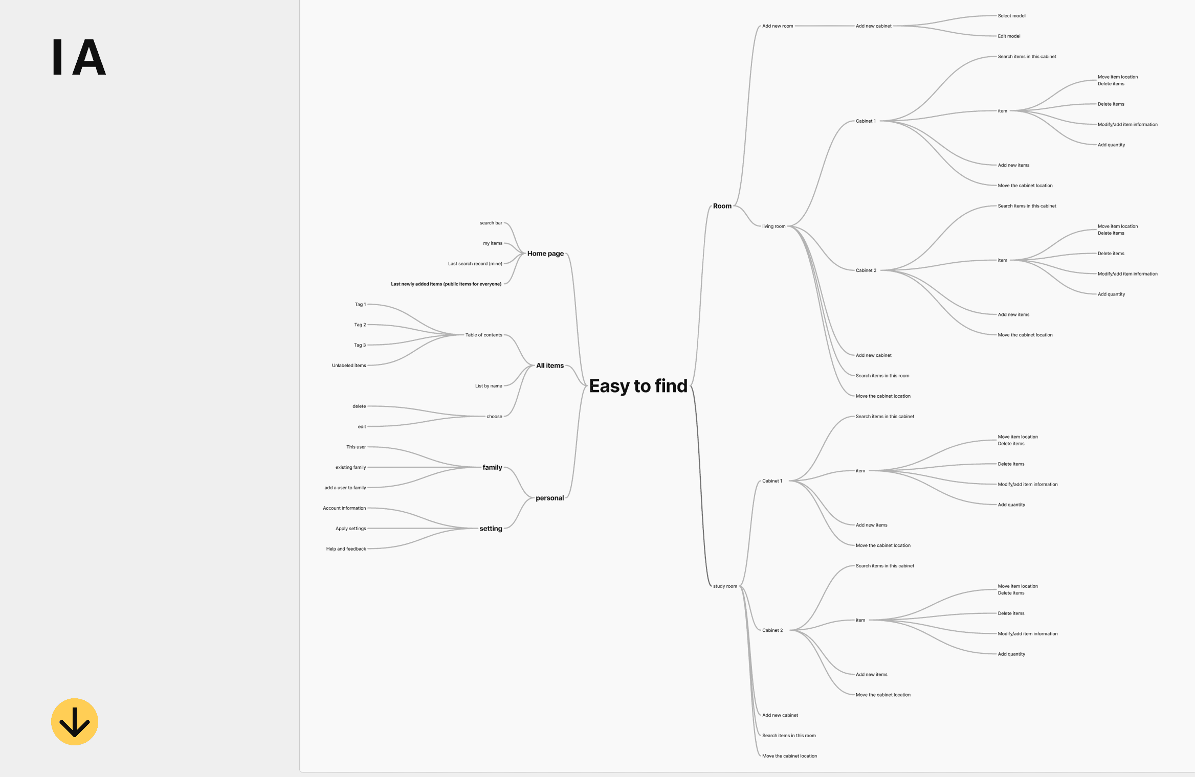 A short-term project focused on foundational UI design. It is an item storage and tracking system aimed at solving the problem of frequently misplacing small or infrequently used objects. I attempted to use the way people rely on spatial memory as the core structural logic of the product’s hierarchy, and explored visualizing the concept of “folders” within the UI. The project also includes extensive UX design documentation and user flows to explain how the system functions as a whole.