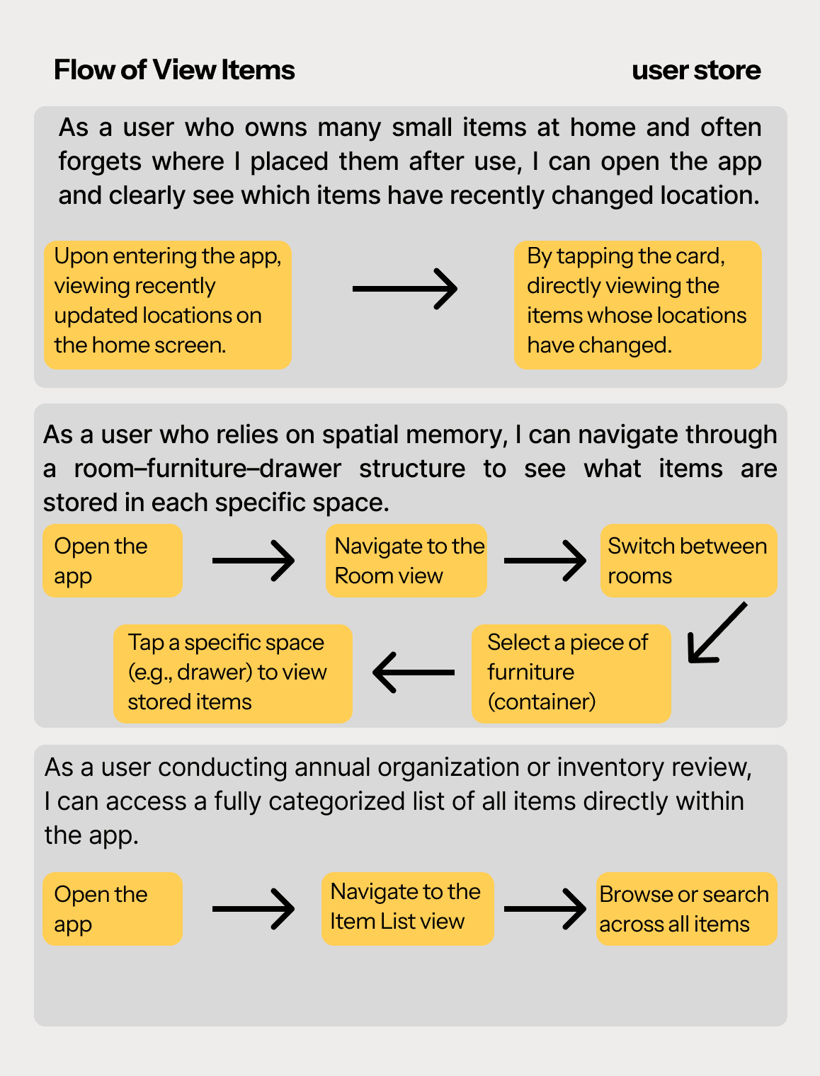 A short-term project focused on foundational UI design. It is an item storage and tracking system aimed at solving the problem of frequently misplacing small or infrequently used objects.